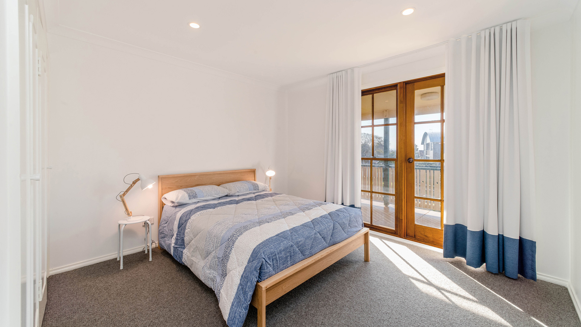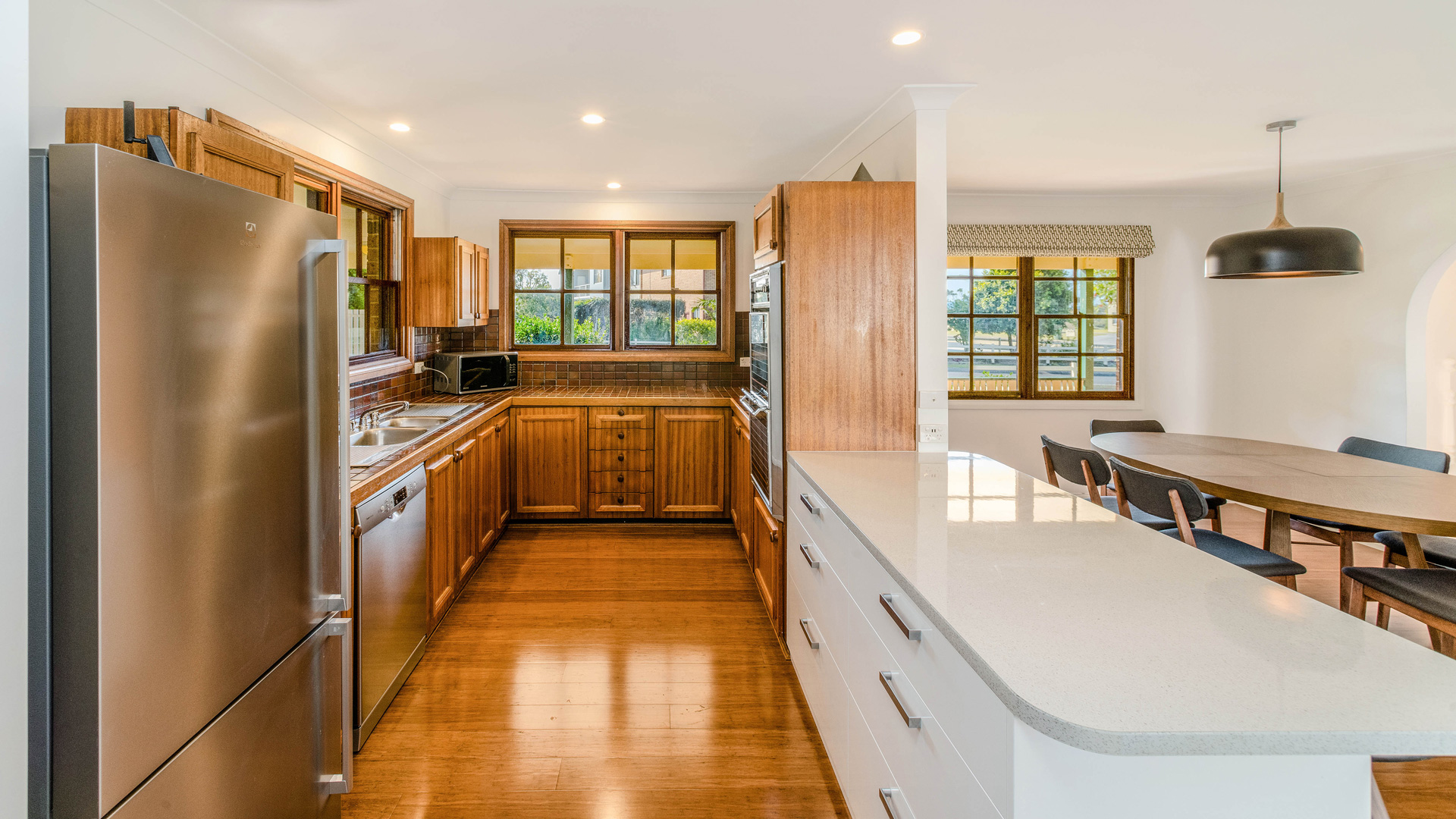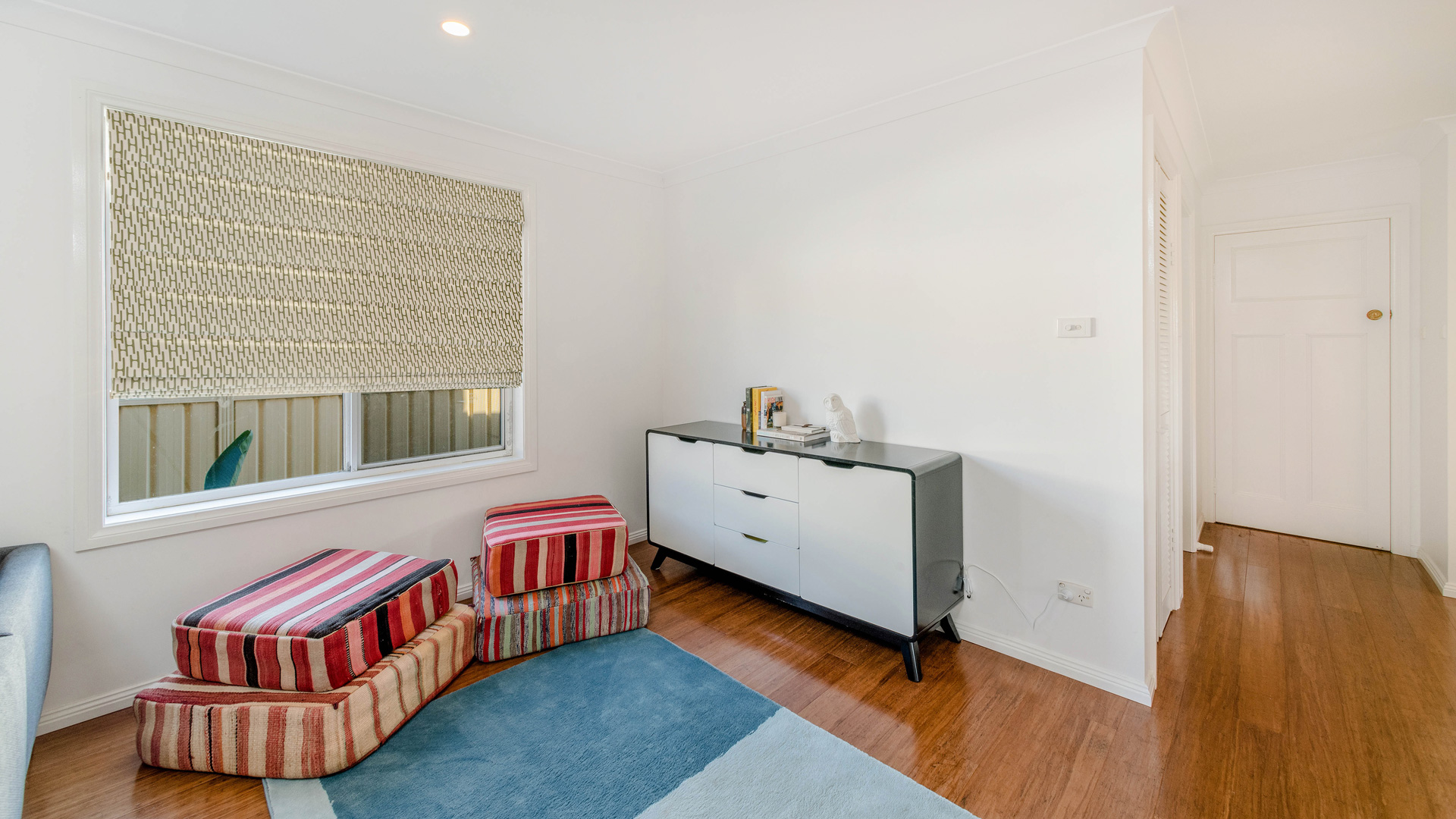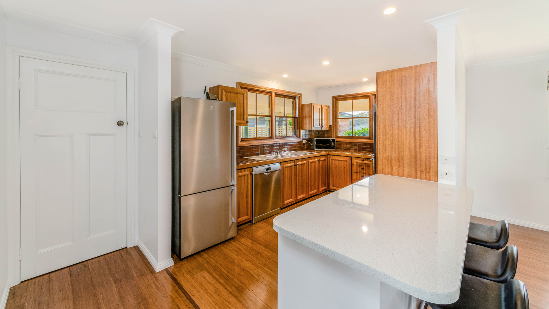 The light-filled open-plan living area captures beautiful river views and flows to the kitchen with plenty of storage.