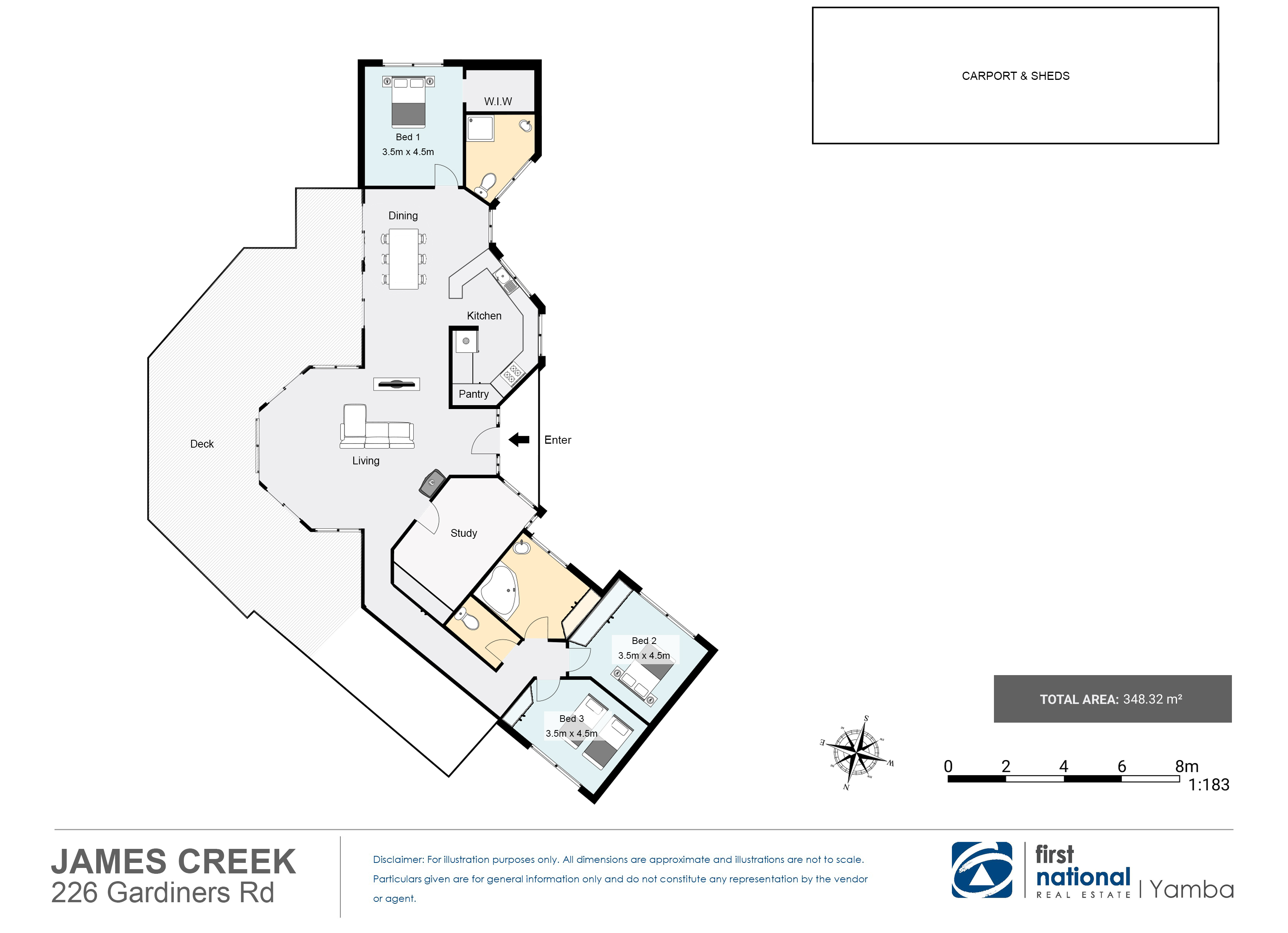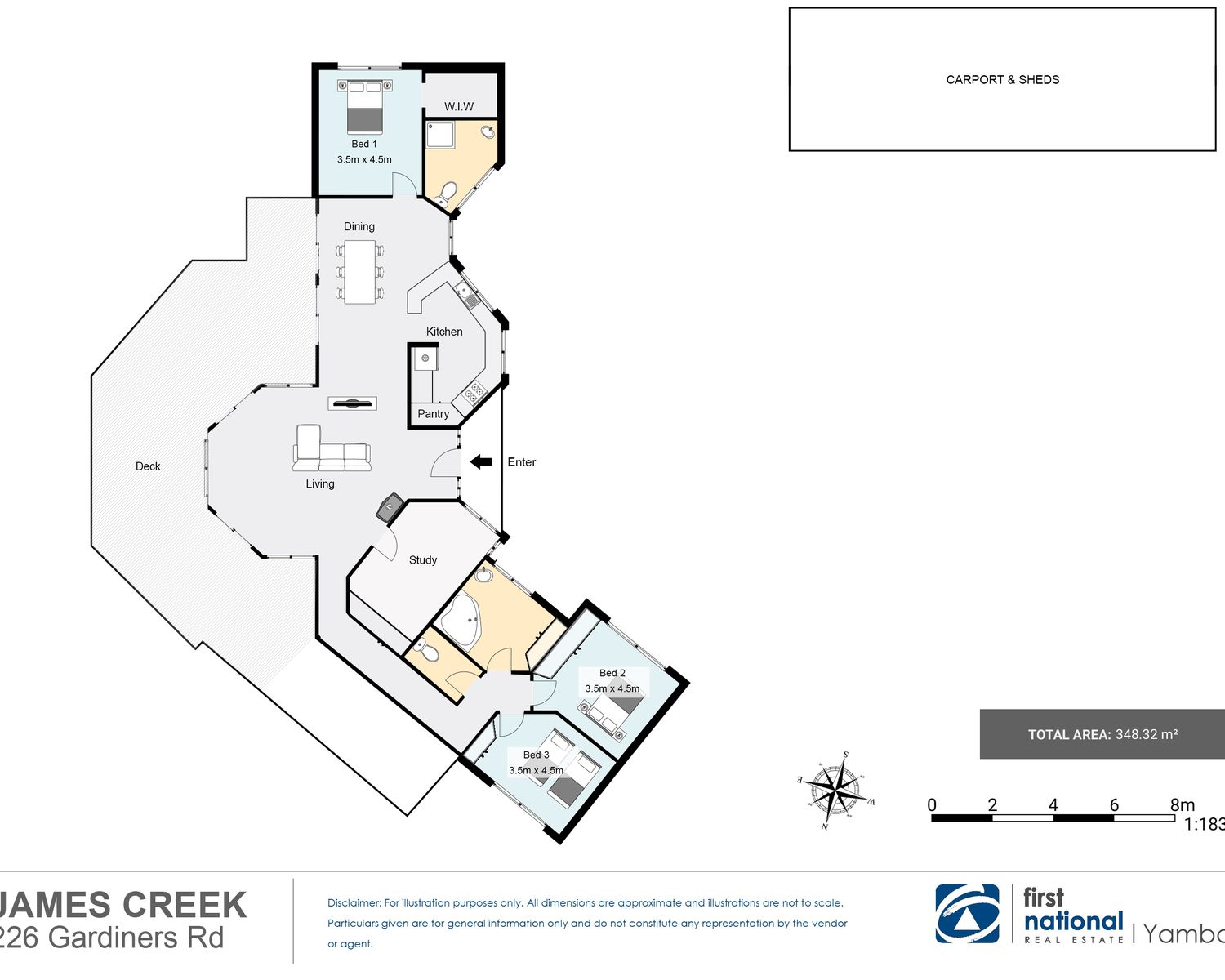 Inside, the home is warm and welcoming, with timber flooring, a cosy wood fire for winter, and reverse-cycle air-conditioning for year-round comfort. The thoughtful floorplan places the master suite (with ensuite and walk-in robe) privately at one end, while two additional bedrooms, a study, and the second bathroom sit at the opposite end - ideal for families, guests, or those needing work-from-home space.