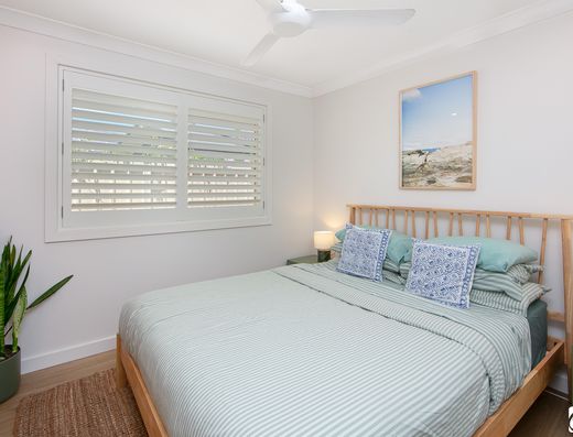 With extra high ceilings, plantation shutters and quality finishes throughout, this home has a sense of opulence and spaciousness making it the perfect space for a relaxed Yamba lifestyle.