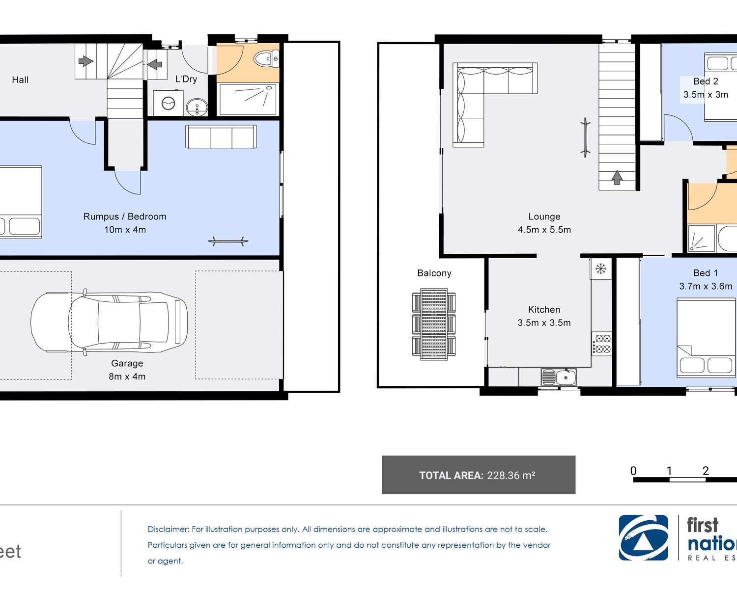 The existing two-storey home features: