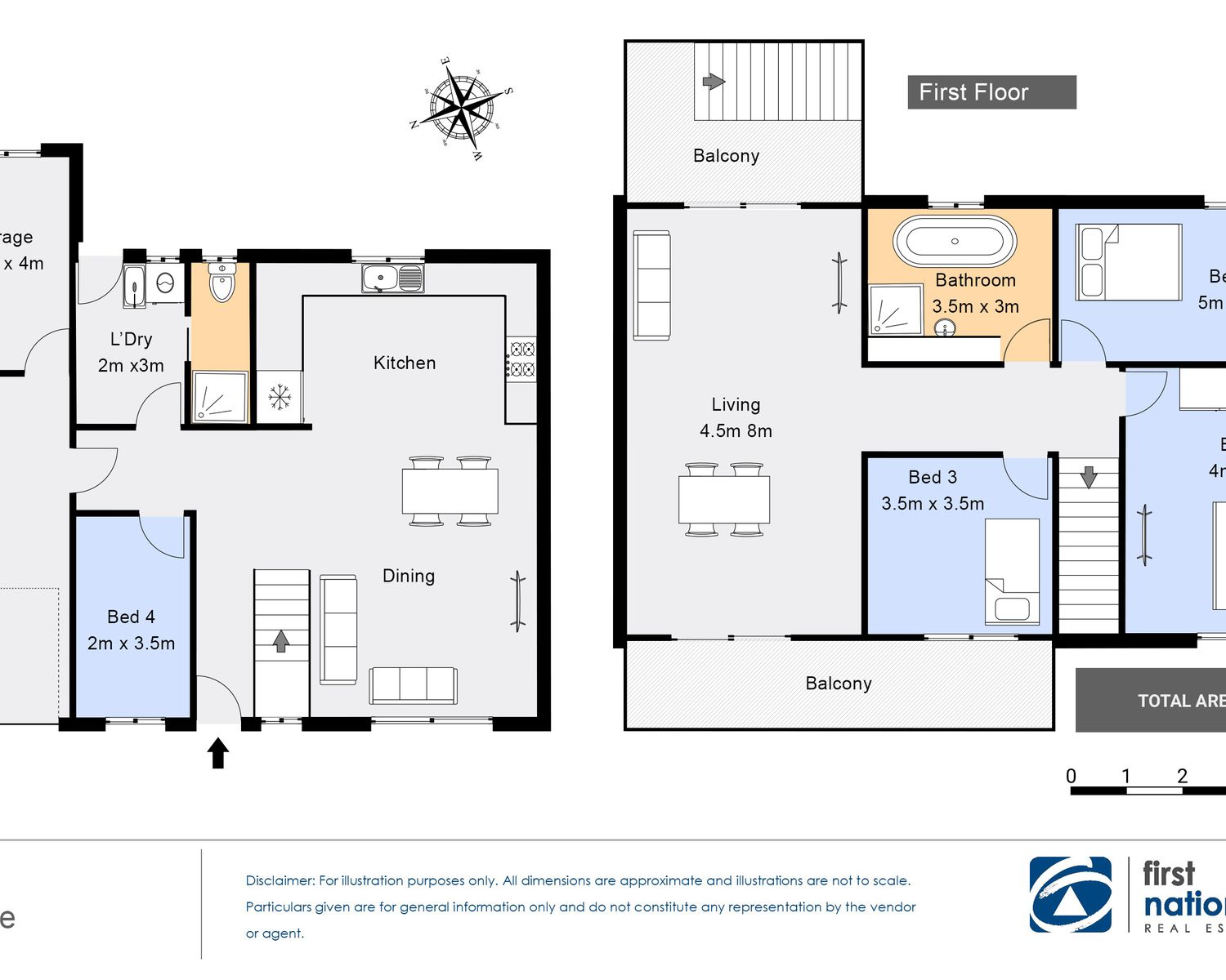 • Open-plan living plus upstairs living area with adjoining balconies