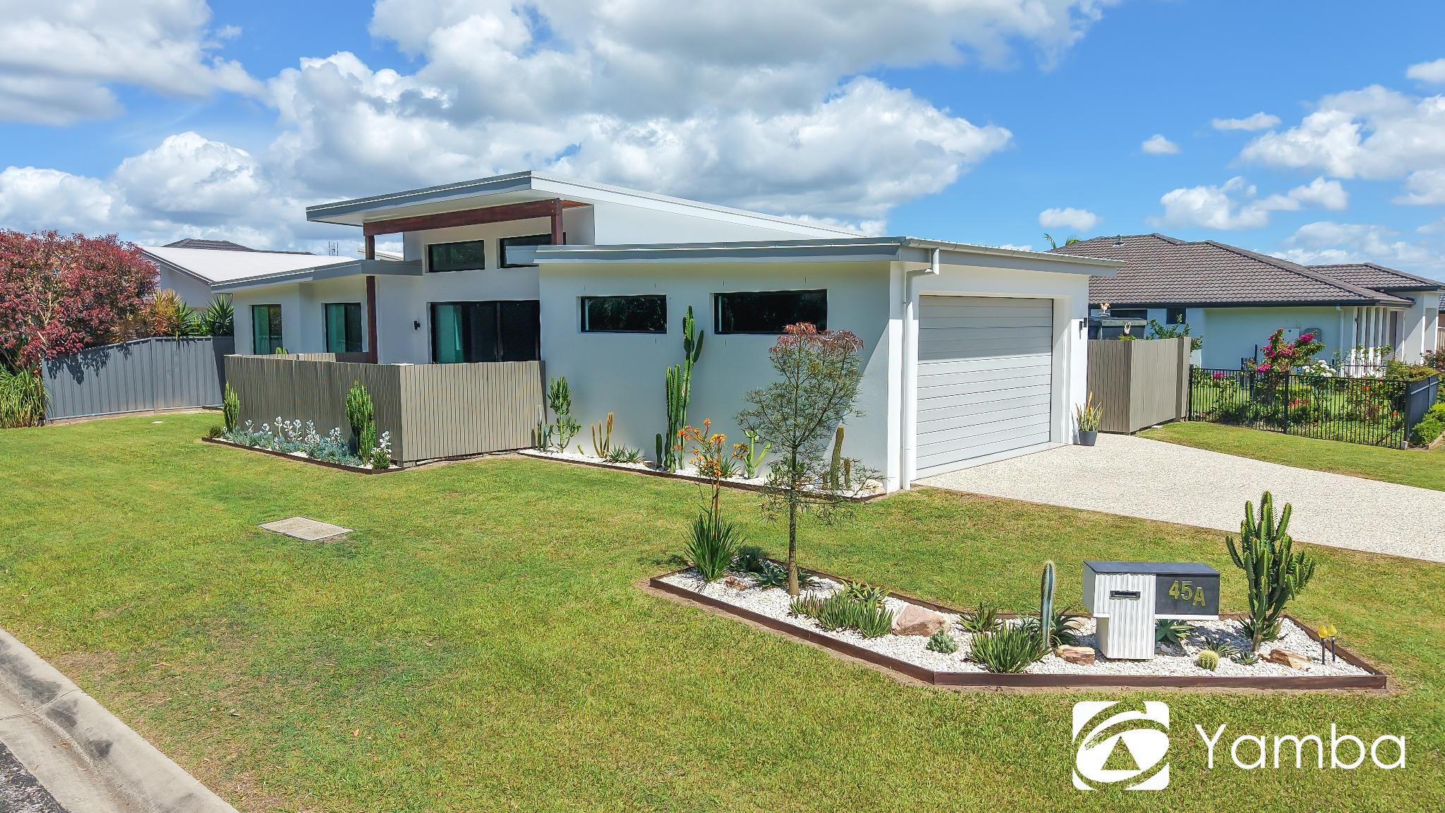 Architecturally inspired and recently completed, this master-built home in Yamba Quays offers quality finishes, lake views and effortless low-maintenance living. Positioned opposite the open green space of Lake Kolora on a 562m² block, with a private courtyard overlooking the water, the home offers a peaceful setting with walking paths, parklands and lifestyle amenity right at your doorstep.