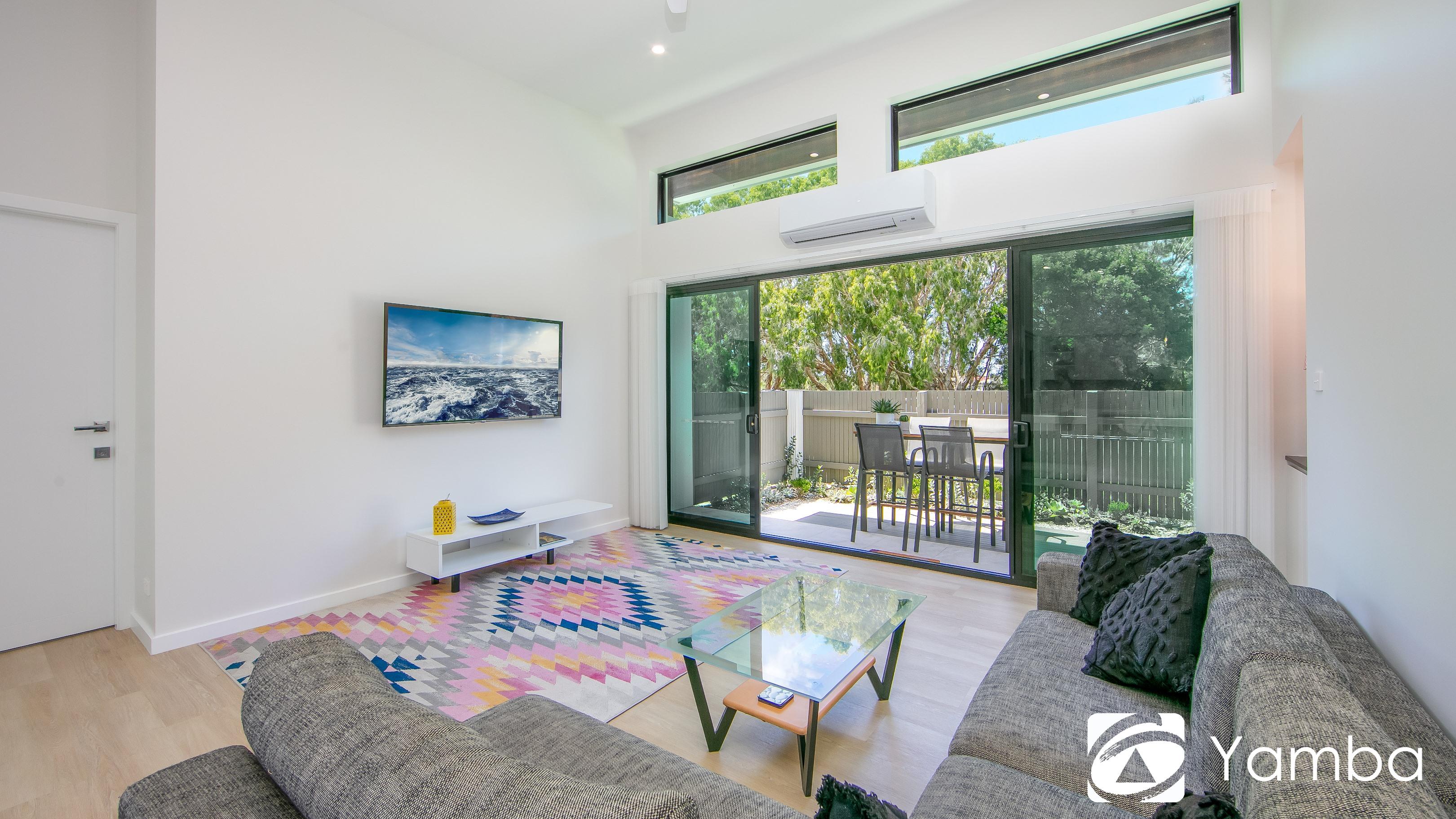 Designed to capture the cooling north-easterly summer breeze, the light-filled interior features a spacious, air-conditioned living area with impressive high ceilings, enhancing the sense of space and natural flow. The open-plan design connects seamlessly to the courtyard, creating an ideal space for entertaining or simply relaxing while enjoying the tranquil outlook.